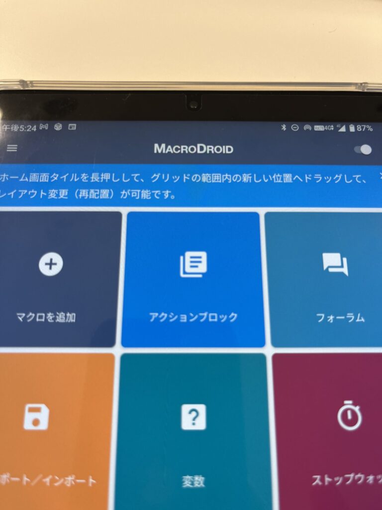- 朝100% → 夕方70%(約10時間運用で30%減、「MacroDroid」使用の場合)